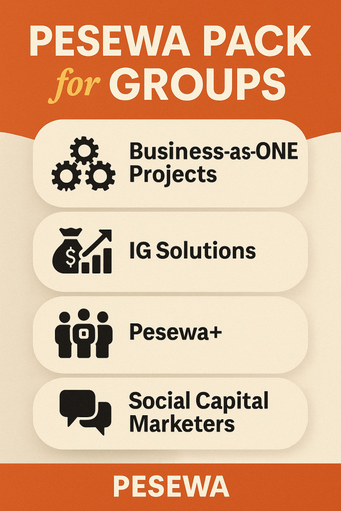 Pesewa Packs are smart, bundled service solutions designed to help individuals, families, groups, and businesses grow with confidence. Each Pack brings together the most essential tools, services, and platforms across the entire Pesewa ecosystem—combining finance, technology, marketing, education, operations, customer engagement, and more into one powerful package.
